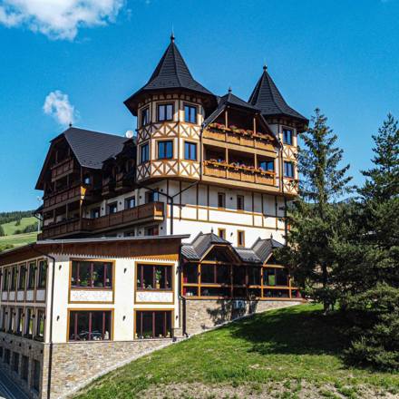 Restaurant mit Bergblick unter einem Metrotile-Dach Slowakei