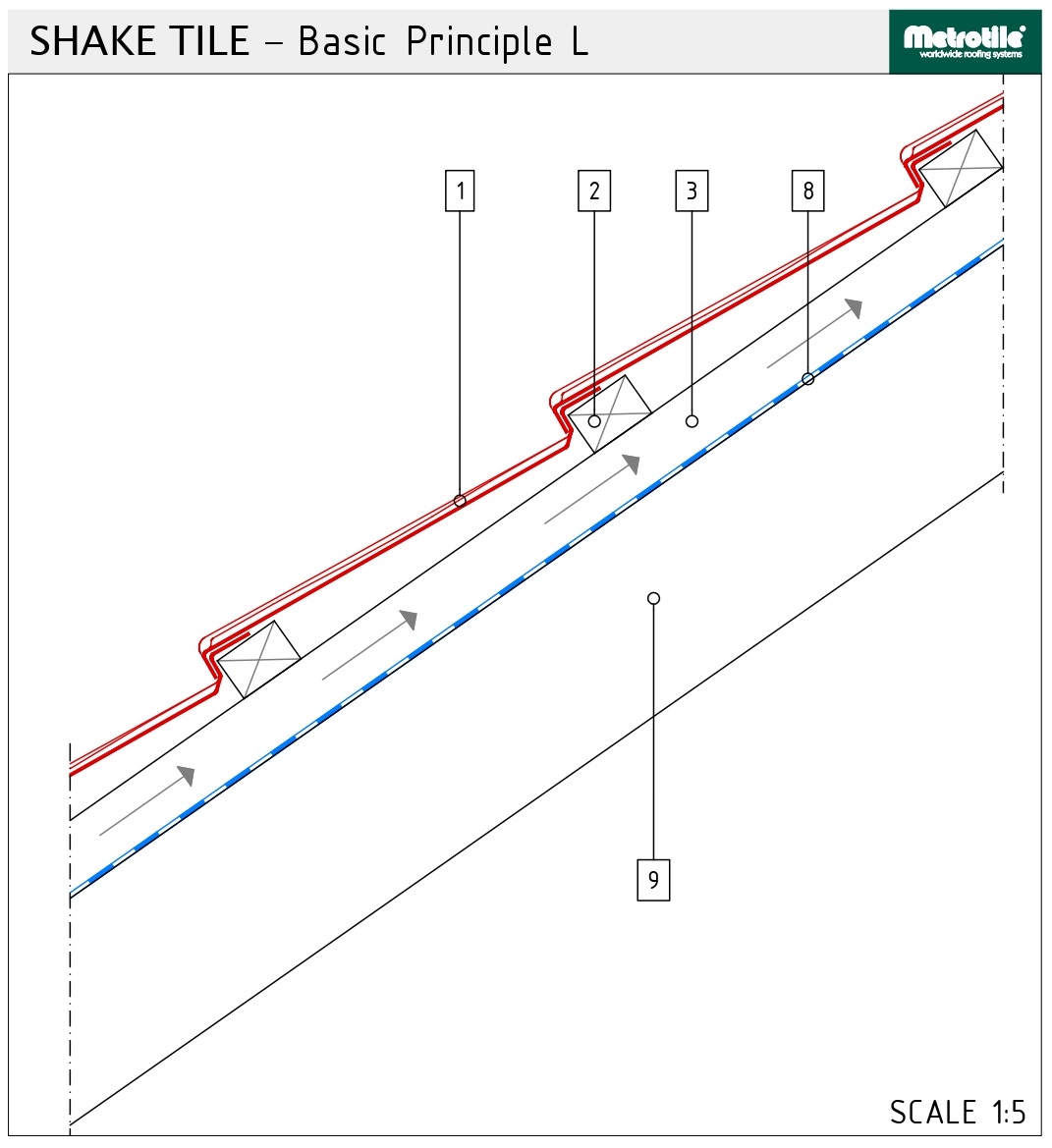 The Shake tiles have all the features of traditional wooden shakes, but without the problems of splitting, warping or increased fire risk. Enhanced shadow lines and visual contrasts are combined with lightweight, long-life steel.